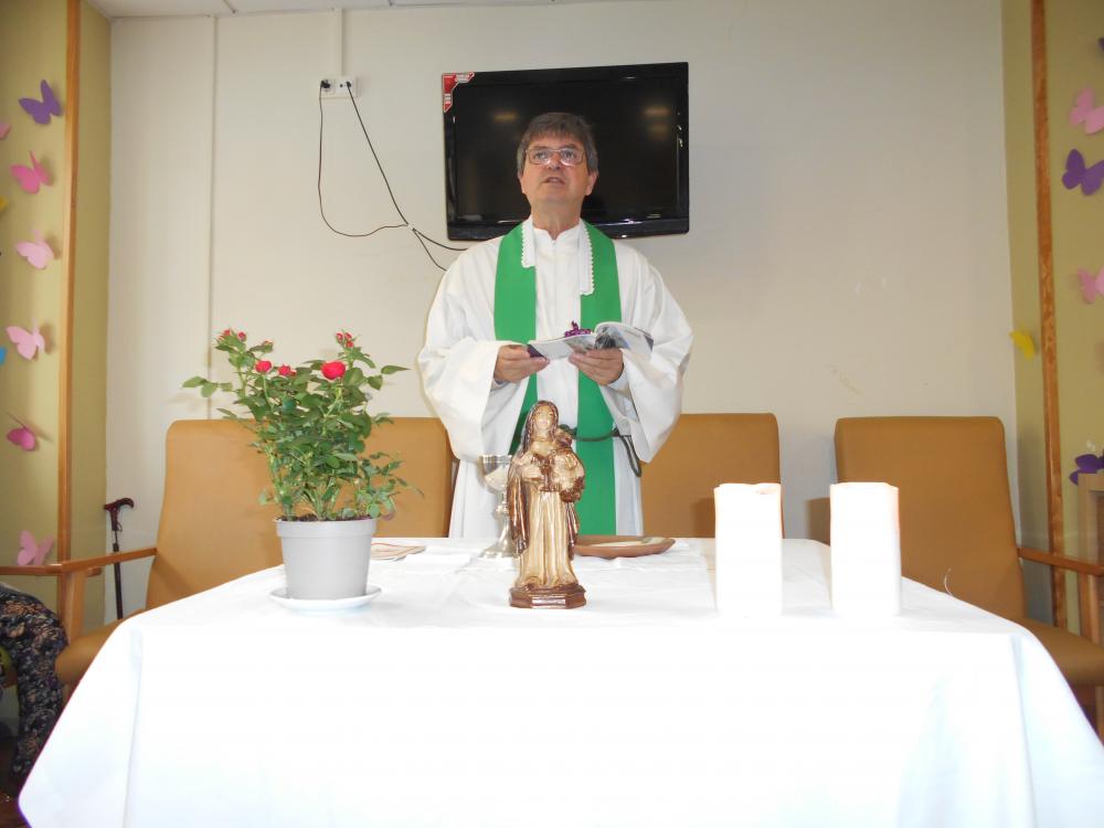 Avui hem celebrat la missa mensual al centre. És una activitat que agrada molt als nostres usuaris i que està convidat tothom qui vulgui venir, com fan alguns veïns de la comunitat. Ens agrada rebre visites i poder gaudir plegats.