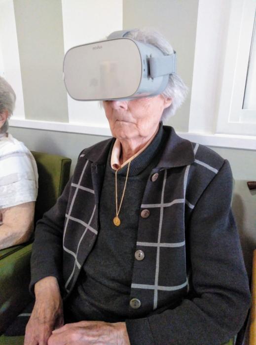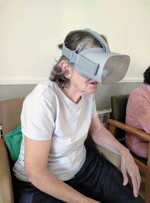 Ahir, amb les ulleres de Realitat Virtual, vam viatjar virtualment a diferents paisatges de platja i de muntanya.