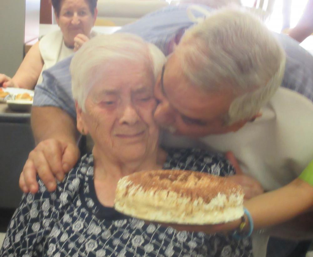 La nostra estimada Isabel porta un pastís per celebrar el seu sant amb nosaltres i, a canvi, rep un munt de petons. Aquí en posem uns quants. Felicitats, bonica!