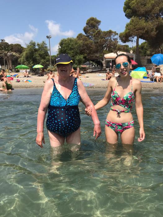Pel matí vam anar a la platja Pixavaques, allí ens vam trobar amb uns quants residents de la residència d'allà i vam fer un beure; després ens vam banyar!
