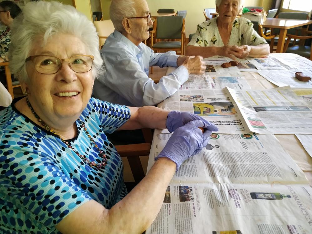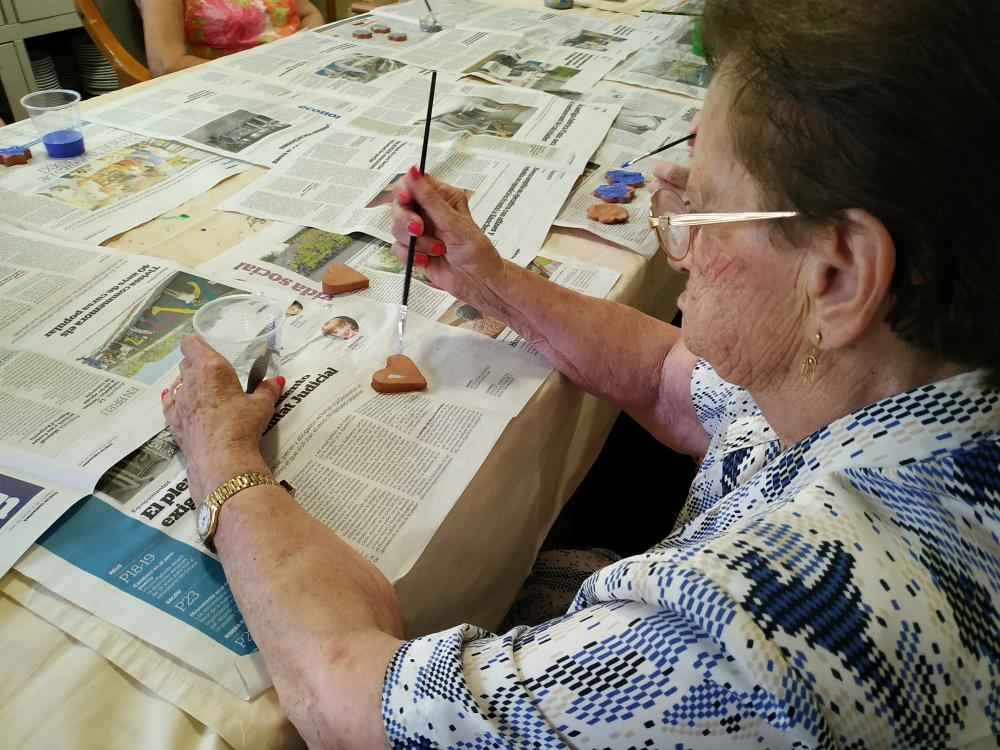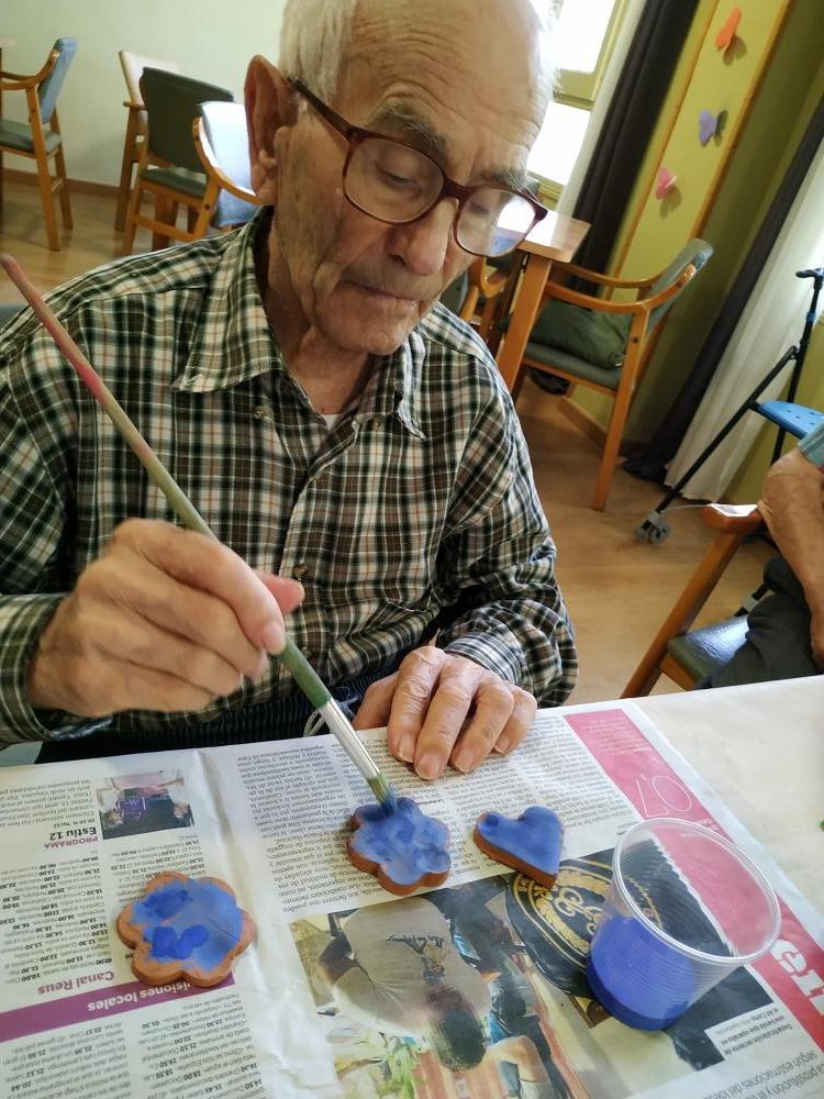 Aquesta setmana estem confeccionant imants per la nevera. Vam modelar el fang, pintar i envernissar les figures. És una tasca molt entretinguda. Els avis s'impliquen molt i tenen cura del detall perquè quedin bonics.