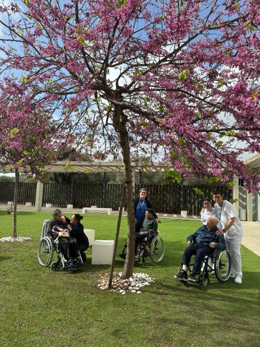 A més de la gimnasia que es realitza diàriament, també passejem pel jardí aprofitant el bon temps! Al menjador Fora Forat, han aprofitat per veure com han florit els arbres.