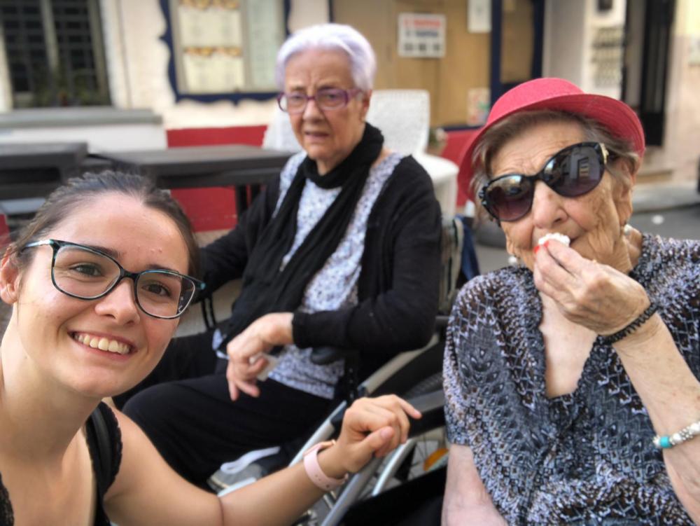 Ahir ens van convidar a un grupet d'usuaris a berenar a Ca Merino, ja que el porta a filla de la senyora Maria.