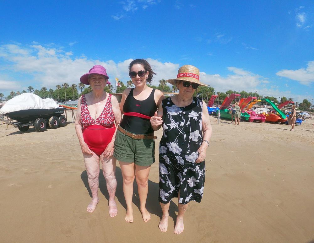 Avui, dimarts 13, hem anat a la platja. Sigui un dia supersticiós o no, la realitat és que aquest matí la bandera ondejava groga i com a conseqüència només ens hem pogut remullar els peus. Però ja diuen que "al mal temps bona cara". Ens hem assegut a la zona adaptada de la creu roja i hem passat una agradable estona contempla'n el mar i compartint anècdotes.