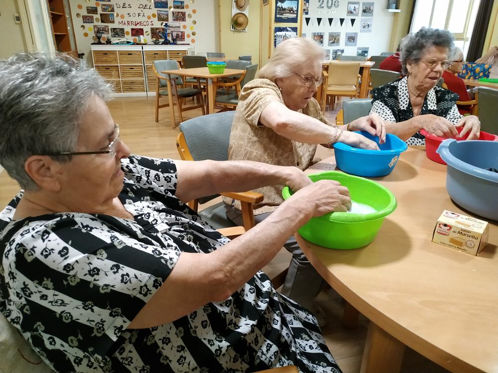 Els nostres avis els agrada molt realitzar tasques vocacionals. Aquest matí, hem rentat mitjons de manera tradicional. Hem utilitzat un sabó, en pastilla, que ha deixat impregnat un aroma, de Marsella, molt bo a la roba.