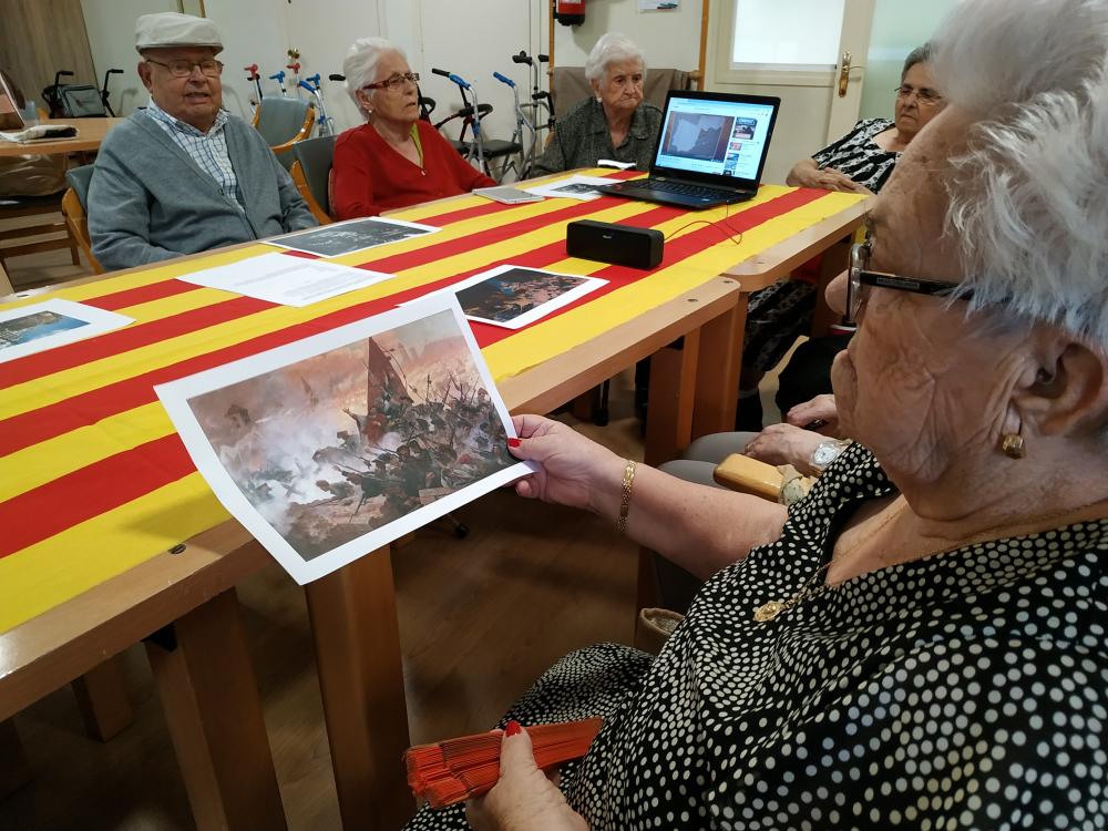 Aquesta tarda, hem realitzat una activitat de reminiscència sobre la història de la diada de Catalunya. Hem vist vídeos i reportatges fotogràfics. Hem parlat sobre els actes i homenatges que se celebra en aquest dia. En Josep ens ha explicat la història dels seus avantpassats que van viure aquells moments.