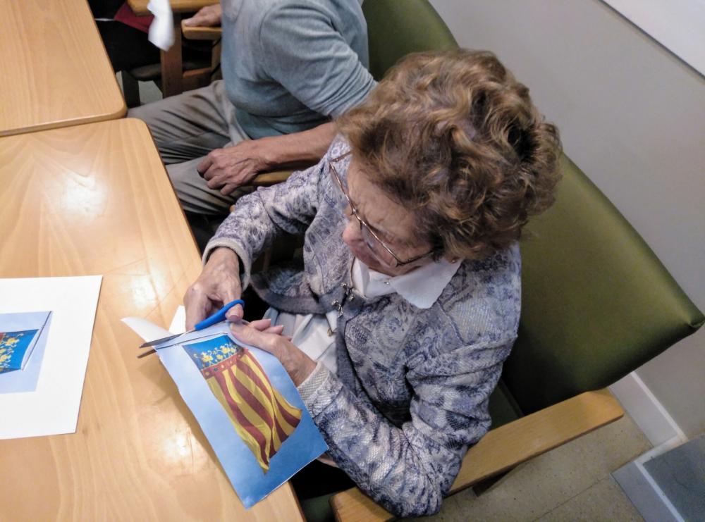 Aquest mes estem viatjant a la Comunitat Valenciana. És per això que estem fent vàries activitats relacionades amb aquesta comunitat. Avui hem estat confeccionant unes banderoles que decoraràn la tradicional "paella del senyoret" que podrem degustar el diumenge que ve.