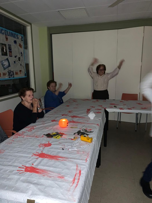 En el primer dels jocs, es tractava de ficar la mà en un recipient tapat amb un drap i endevinar que hi havia. En el segon, havien d'embolicar amb paper a una persona fins a convertir-la en una mòmia! Després havien de trobar el major nombre possible de fantasmes amagats pel centre. Un altre dels jocs era veure el dibuix d'una carabassa i després muntar la mateixa carabassa amb els ulls tancats. L'última activitat va ser ballar la cançó de Thriller!