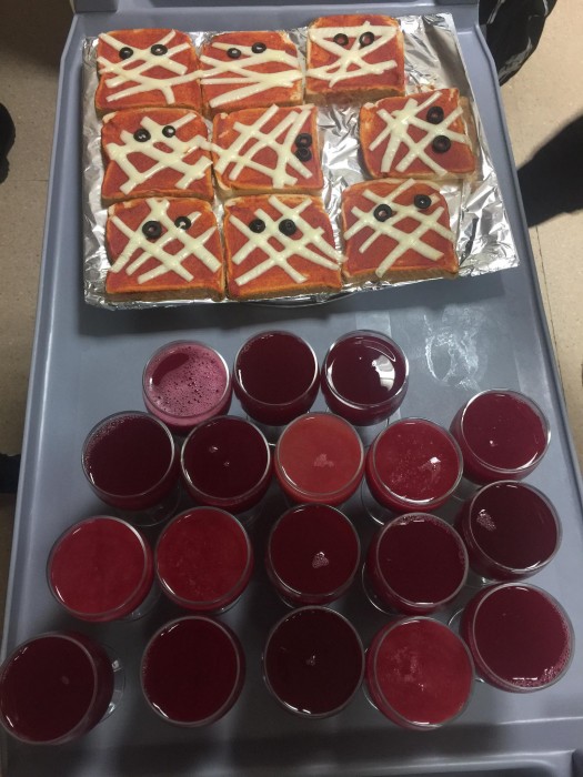 Amb totes aquestes activitats ens mereixiem un berenar especial i aquest constava de mòmies amb un got de sang!!